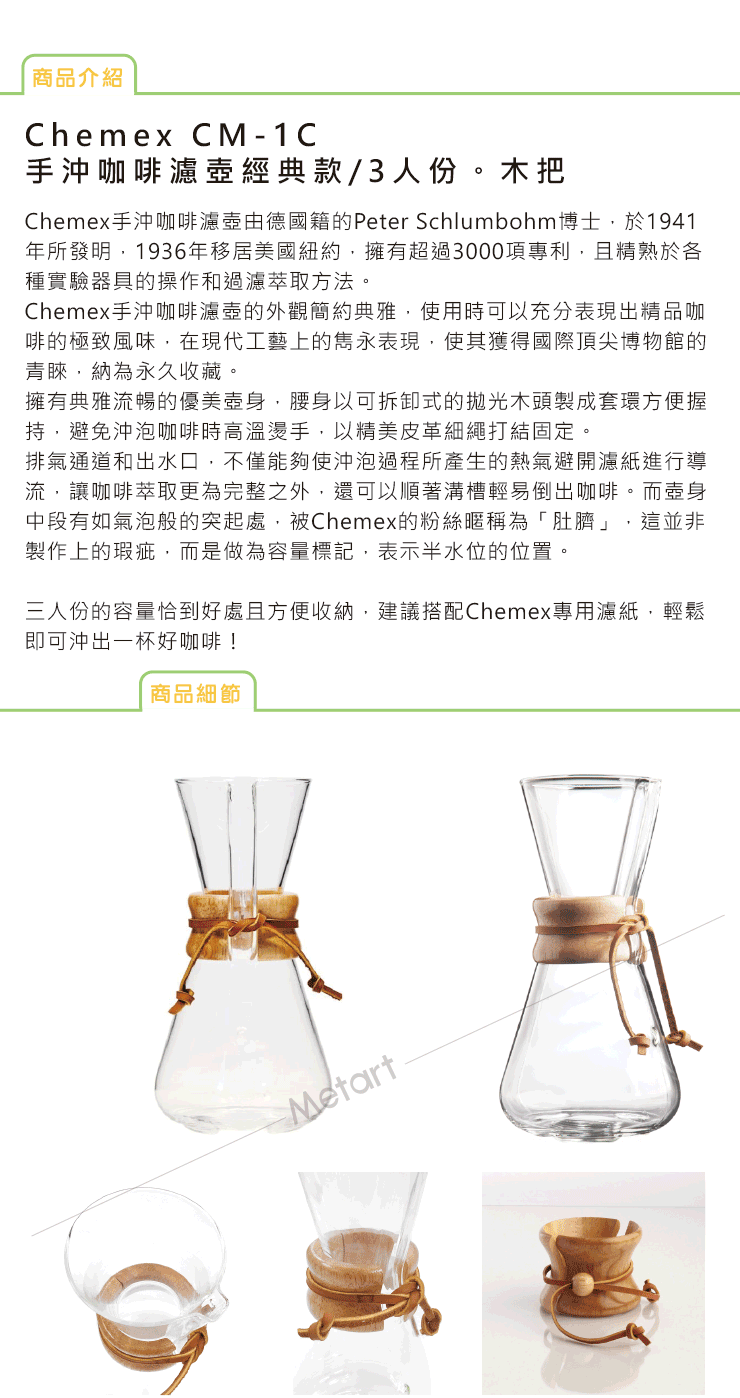 Chemex 手沖咖啡濾壺經典款(含木把)